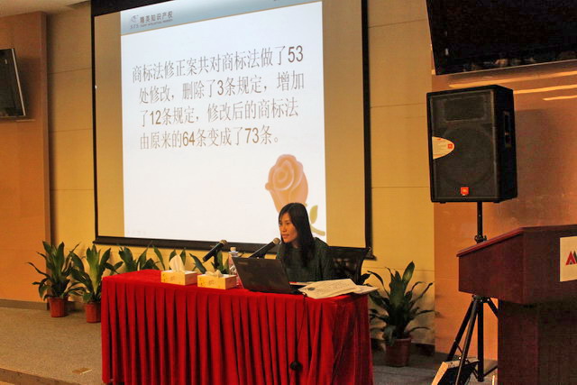 專題培訓由法律部林琳和流程部鄭炫娜主講,其中法律部對新《商標法》及其實施條例的主要內(nèi)容進行了全面深入解讀,詳細闡述了商標審查、審理流程及期限、商標審理、注冊商標專用權保護和對代理機構的規(guī)范內(nèi)容,流程部針對《商標法》實施后國家商標局對國內(nèi)常規(guī)業(yè)務上報要求的調(diào)整進行講解。講授內(nèi)容各有側重,同時結合了案例講解,深入淺出、通俗易懂,既有指導性又有實用性。