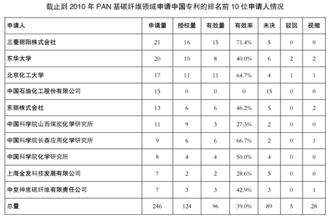 在全球排名前十位的專利申請(qǐng)人中,以東麗為首的三大日本公司占據(jù)了碳纖維技術(shù)領(lǐng)域?qū)@暾?qǐng)總量的60%,韓國(guó)曉星公司也擁有一定專利申請(qǐng)量,美國(guó)和英國(guó)的申請(qǐng)人也主要為企業(yè),中國(guó)的北京化工大學(xué)和中國(guó)科學(xué)院山西煤炭化學(xué)研究所分別排在第五位和第六位。張偉波向記者介紹,與日本、美國(guó)專利申請(qǐng)主要來(lái)自于企業(yè)不同,我國(guó)在PAN領(lǐng)域的專利申請(qǐng)主要以高校和科研院所為主,國(guó)內(nèi)企業(yè)在該領(lǐng)域?qū)@暾?qǐng)量相對(duì)較少。